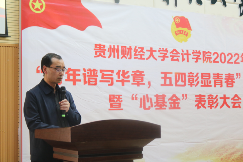 会计学子献上精彩的表演,表达了当代青年不忘初心,砥砺前行的赤诚之心,展现了会计学子昂扬向上的精神风貌。大会表彰了2021-2022学年团课优秀学员、优秀学生干部、学院“学习之星”、“奋斗之星”、“文艺之星”,以及“心基金”获得者等一系列先进典例。优秀学生干部代表袁野发言,她表示作为学生干部,应该时刻本着“服务同学,锻炼自我”的宗旨,用一腔热血为我院团学事业谱写华美的篇章。“心基金”获奖学生代表郑姗发言,她对学校、老师及黄可心先生表示由衷的感谢,并向大家分享了自己在大学里的收获。黄可心先生讲话 ,他对同学们的精彩表演表示赞许,向同学们讲述“知识改变命运、勤奋带来机遇、性格成就事业、细节决定成败、坚持就是胜利”五项人生箴言,希望广大会计学子,以此发光发热,为母校争光!到场校友与同学们进行交流互动,并就自己成功的经验给同学们今后的发展提出宝贵的意见。
