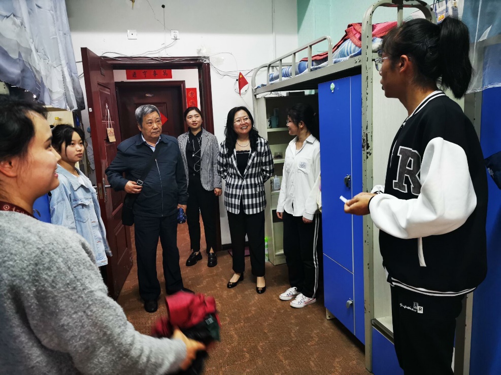 领导与老师一同走访了学生宿舍,就同学们的生活、学习及就业规划等情况进行详细交流,激励同学们努力学习,扎实学好专业知识,提升自己,不负韶华,嘱咐同学们要积极营造和谐友爱的宿舍氛围,积极锻炼身体,认真遵守学校疫情防控相关规定。