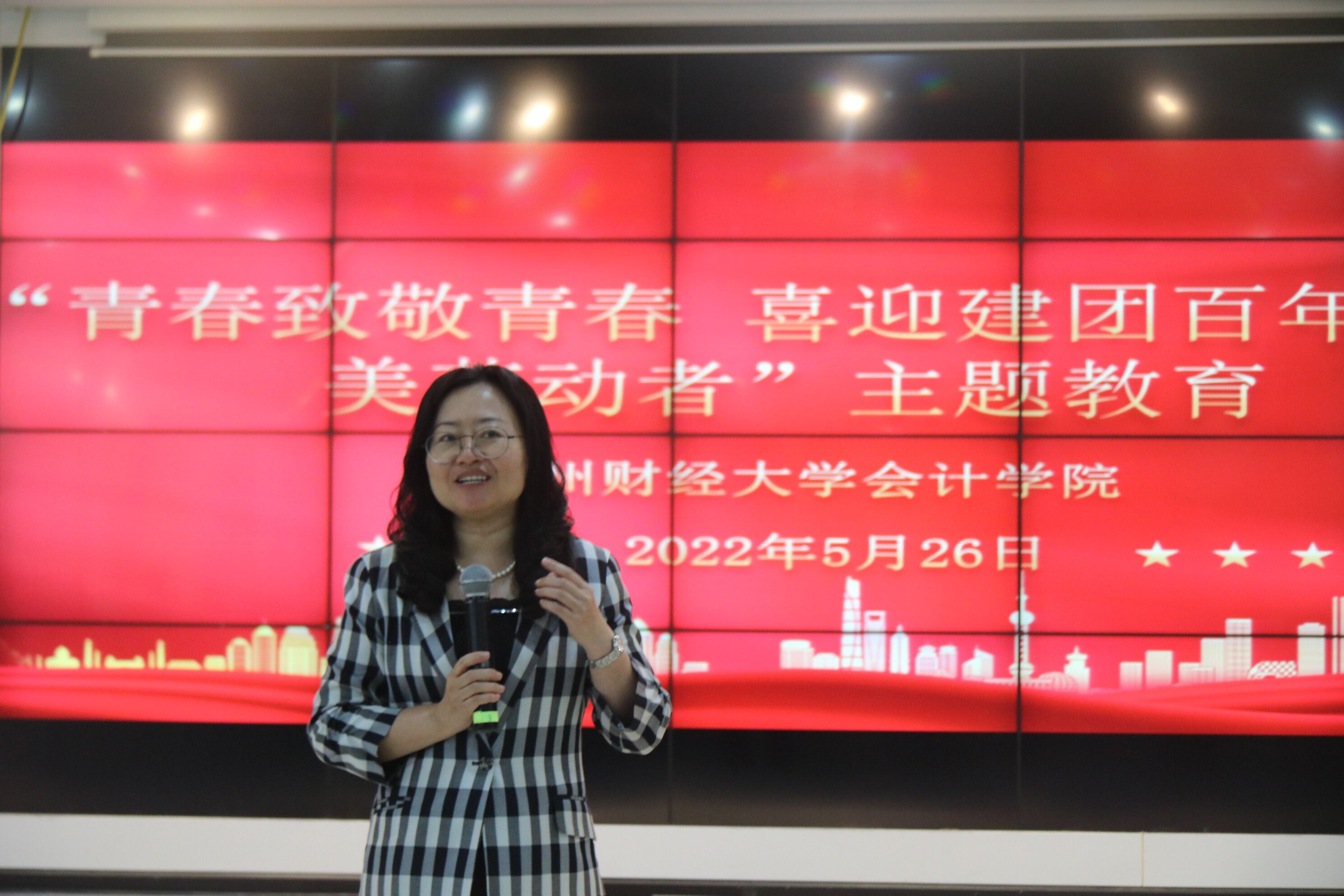 校党委委员、副校长肖小虹为本次活动致辞,希望同学们能够奋发向上,努力拼搏,像谌贻琴书记在报告里所说的“无愧今天的使命担当,不负明天的伟大梦想,脚踏实地走好每一步、只争朝夕干好每一天,努力干成一番新事业、干出一片新天地,创造出不负历史、不负时代、不负人民的光辉业绩”,希望我们会计学子紧密团结在以习近平同志为核心的党中央周围,敢闯敢拼,开拓进取,勇担时代使命,以实际行动迎接党的二十大胜利召开。