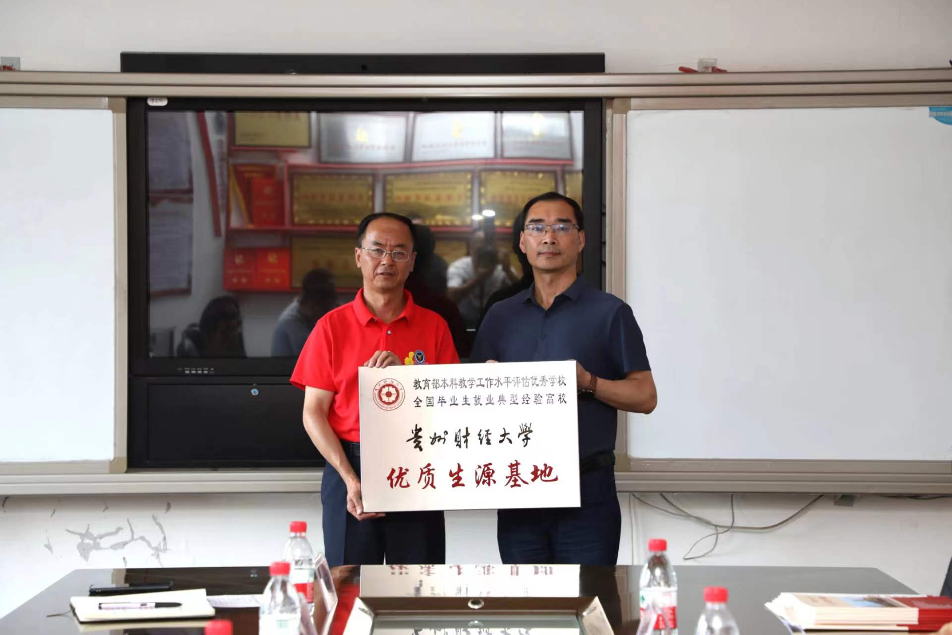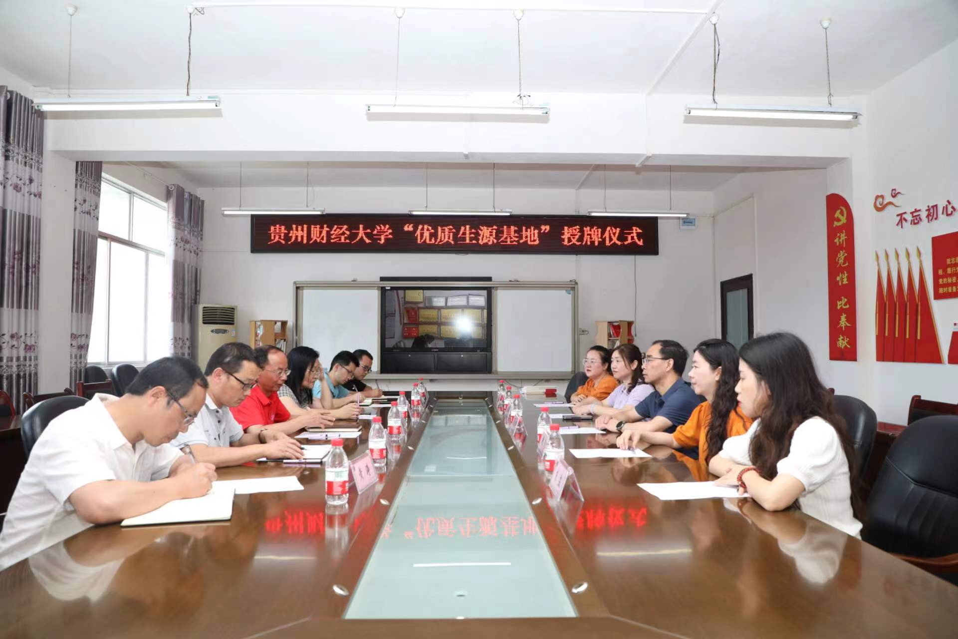 26日下午工作队赴凯里实验高级中学开展招生宣传专题座谈会,凯里实验高级中学校长龙屏、副校长杨景钧、总务主任杨勇出席会议,参会双方分别就学校、学科、专业、学生报考意愿等内容进行了深入交谈,效果良好。最后龙屏校长代表凯里实验高级中学接受了我校“优质生源基地”授牌。