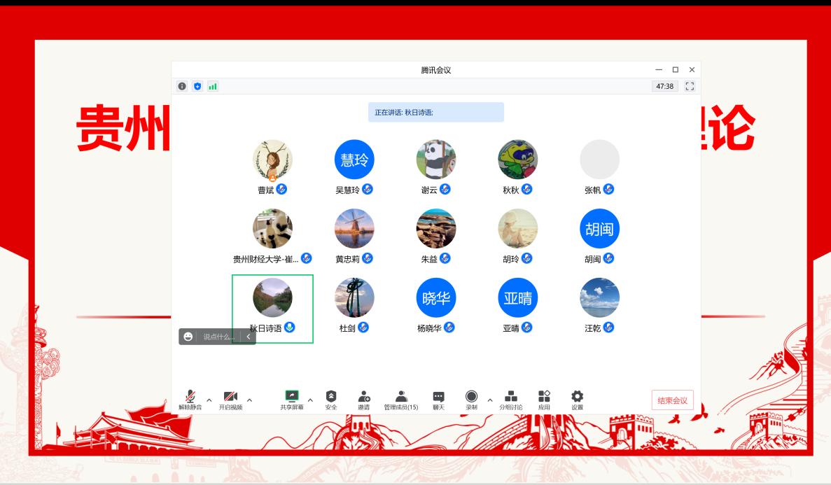 最后,聂永刚同志作总结,他强调,一是要学好用好《习近平谈治国理政》第四卷,广大师生必须读原著、学原文、悟原理,班子成员要引导联系支部、科室等学习跟进、认识跟进、行动跟进,坚持不懈用党的创新理论武装头脑、指导实践、推动工作。二是要坚决落实好疫情防控的有关要求。要从严从紧落实校园防控措施,加强重点部位管理,强化学生心理关怀和学习生活服务保障,加大对意识形态、舆情管控、教育引导的关注,确保学校防疫安全和校园稳定,同时,统筹做好疫情防控和教育教学秩序恢复。三是要统筹做好疫情防控和党建工作,严格党内政治生活,严肃“三会一课”等组织生活制度,加强党员教育管理,充分发挥先锋模范和党组织战斗堡垒作用,为切实打赢贵阳疫情防控攻坚战,有力有序推进教育教学、科学研究、人才培养等各项工作提供组织保障,以实际行动迎接党的二十大胜利召开。