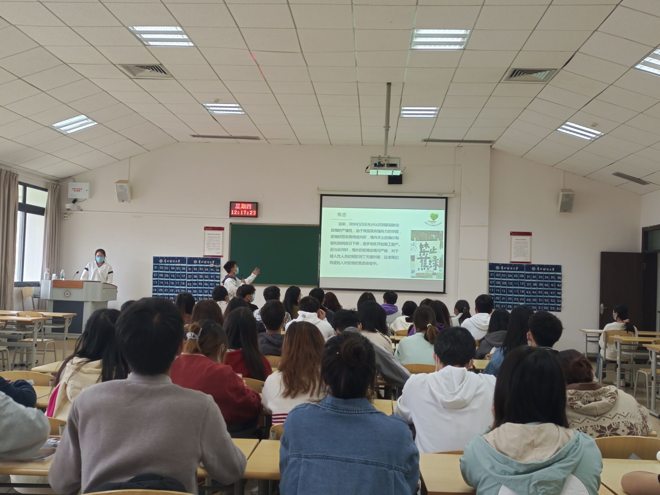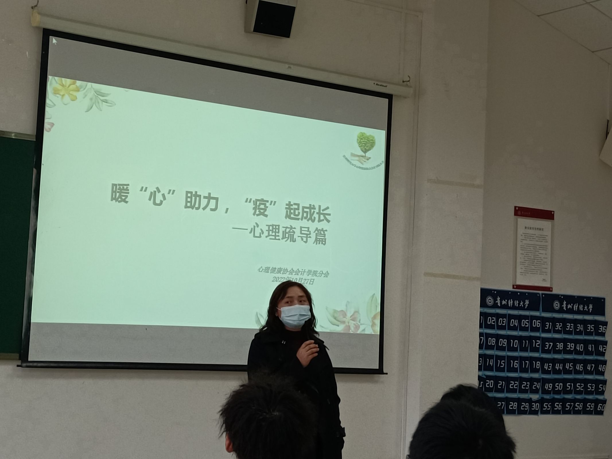 主题班会从疫情下大学生的精神内耗、疫情下大学生产生心理困扰的原因、疫情后大学生的心理疏导、疫情后大学生的使命与担当四个部分展开。心理委员王述超同学首先介绍疫情防控下同学们可能会产生的几种负面情绪,并分享如何处理负面情绪的应对和疏导方法,帮助同学们增强心理韧劲,提高心理免疫力;其次大家逐一分享在校园封闭管理期间自己的学习和人生规划,引导同学们以更加平和乐观的心态面对疫情防控工作;随后,黄忠莉副书记对主题班会进行总结,她称赞心理委员们在疫情下学生管理工作中发挥的重要作用,鼓励大家继续带好头,各班要通过形式多样的学习向同学们普及心理健康相关知识,开展有效的心理疏导工作,对发现的异常状况要及时伸出援手、及时上报,共同建立稳定的身心环境。