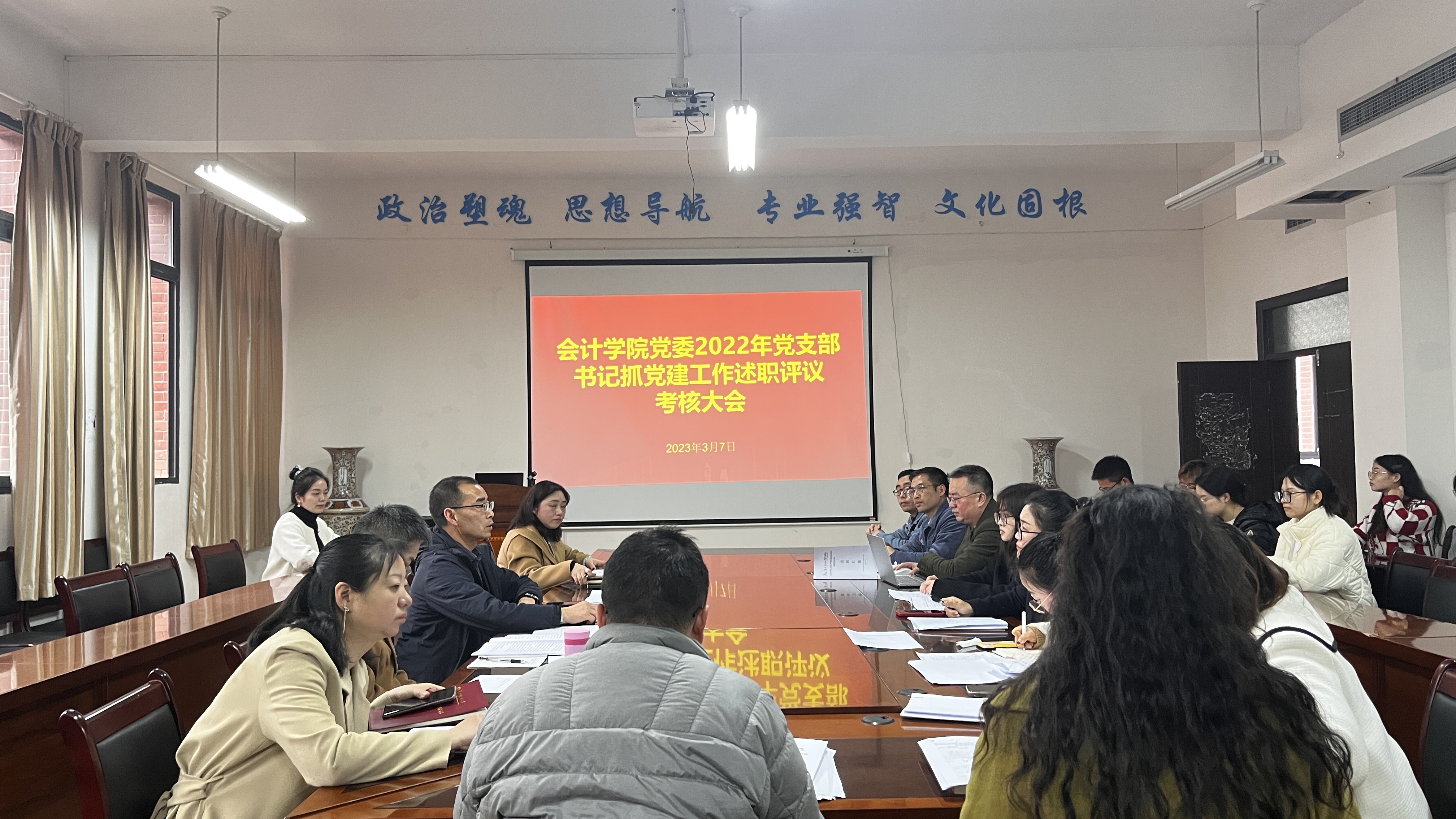 党委于3月7日下午14:00在崇德楼206会议室召开2022年度党支部书记抓党建工作述职评议考核大会。学院领导班子成员、党委委员、各党支部书记以及党员群众代表参加会议。