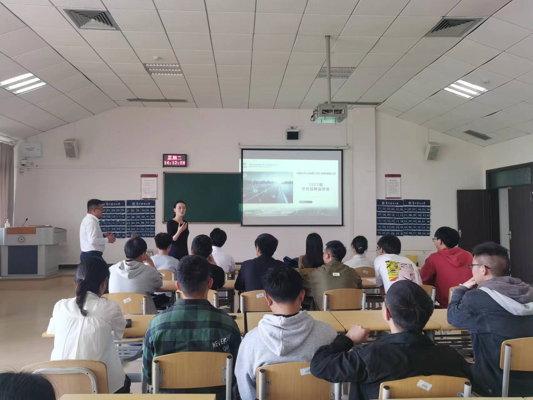 为进一步做好2023届毕业生就业工作,我院积极与用人单位对接,邀请到中国水利水电第十四工程局有限公司到学院开展招聘会。