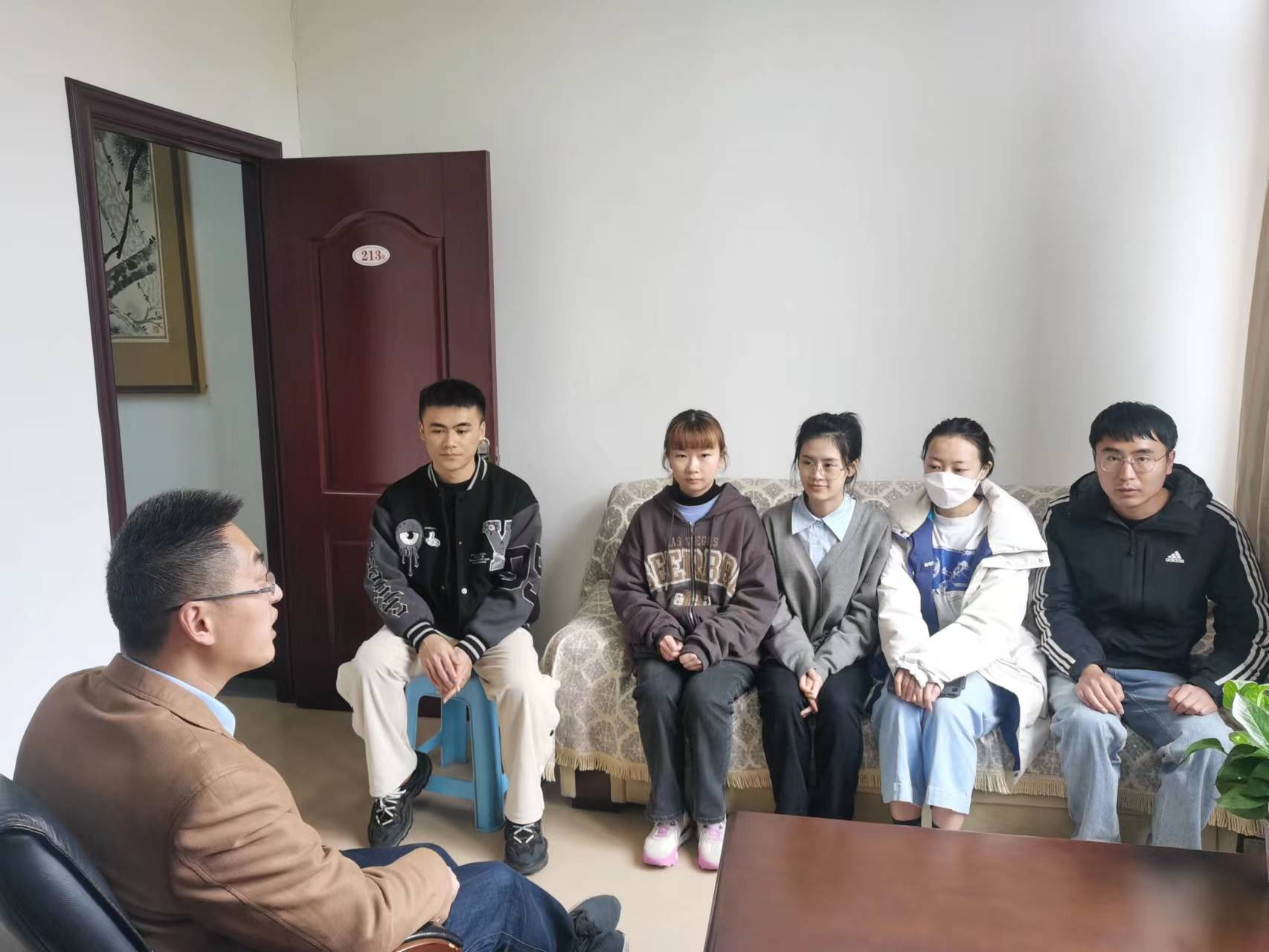 “最近学业情况如何?”“都参加了哪些学科竞赛?”“论文写的如何了?”“工作找的怎么样?”“选择考博这条路有没有什么困难?”……杜剑关切询问每一名学生的情况,并对学生在学业、工作等方面存在的疑惑进行了对症指导。