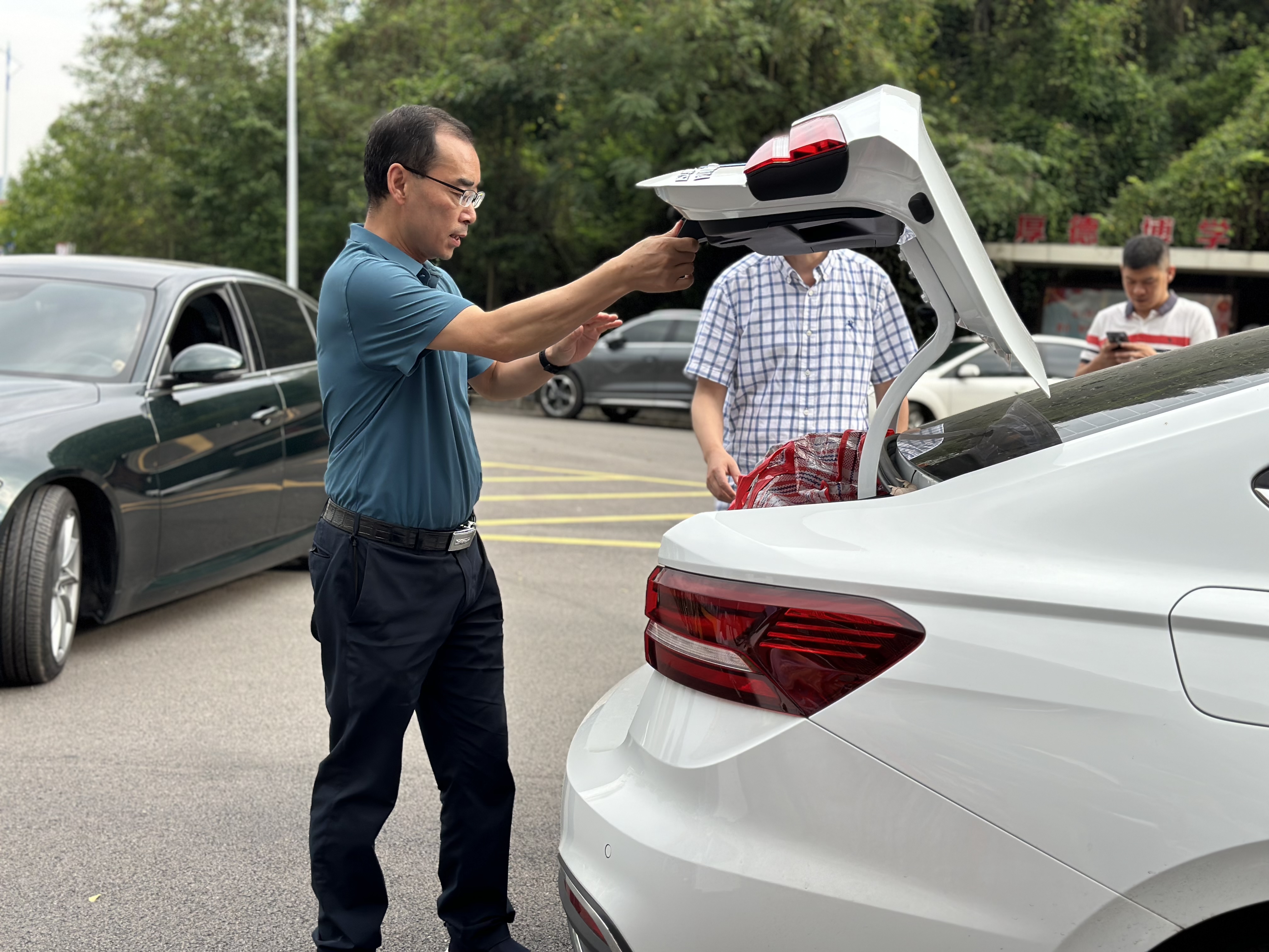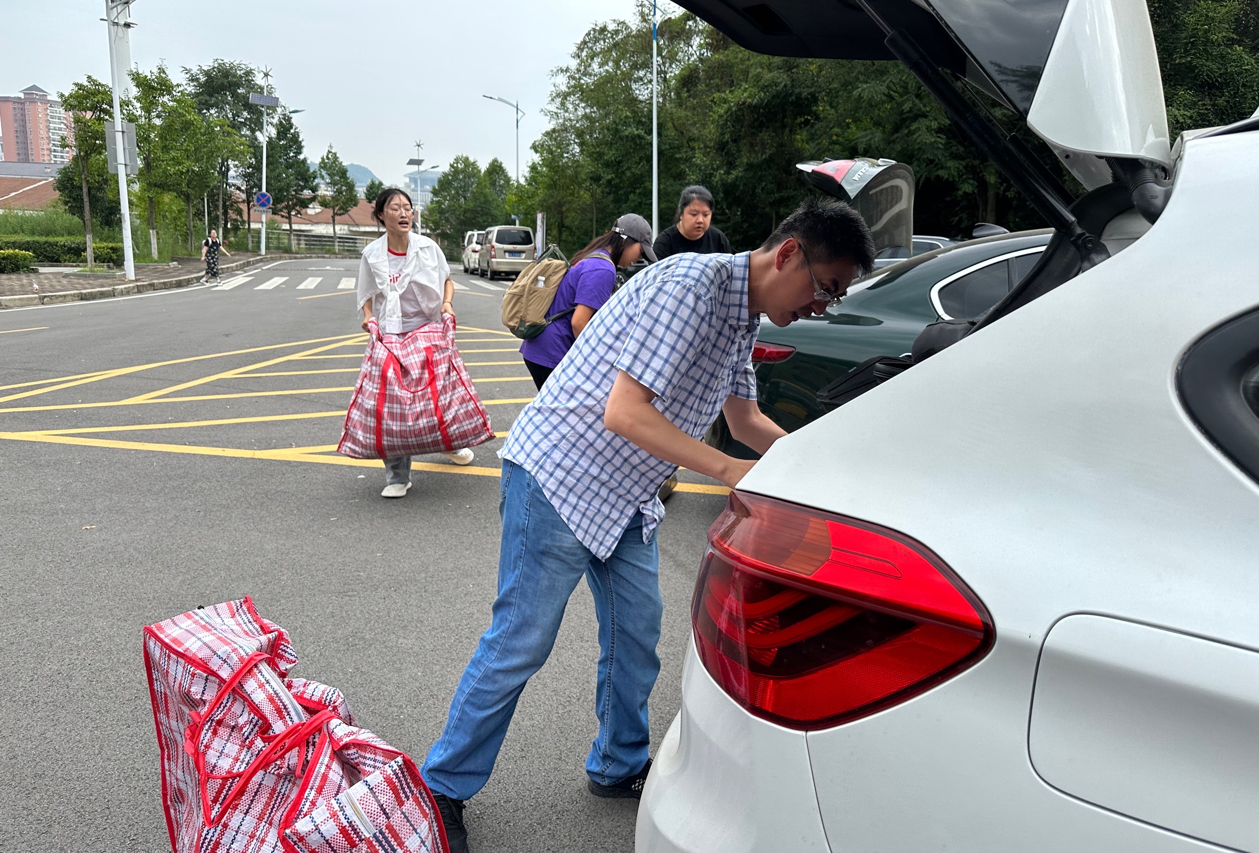 教师爱心车队在崇德楼前集结,然后分成两队分别到D17和丹桂苑二栋搬运行李。在行李搬运现场,学院辅导员们负责为教师爱心车队“派单”。院领导反复叮嘱大家:“一辆车负责运送一名学生的行李,然后再将学生本人带上一起送到东区,这样就不容易丢东西。”爱心车队的老师们纷纷“抢单”,他们不惧炎炎烈日,主动帮学生清点行李并扛上车,后备箱、座位上全部装满了行李。将学生和行李送到东校区后,爱心车队的老师们还指导学生找到指定宿舍楼,领取宿舍钥匙并顺利入住宿舍。