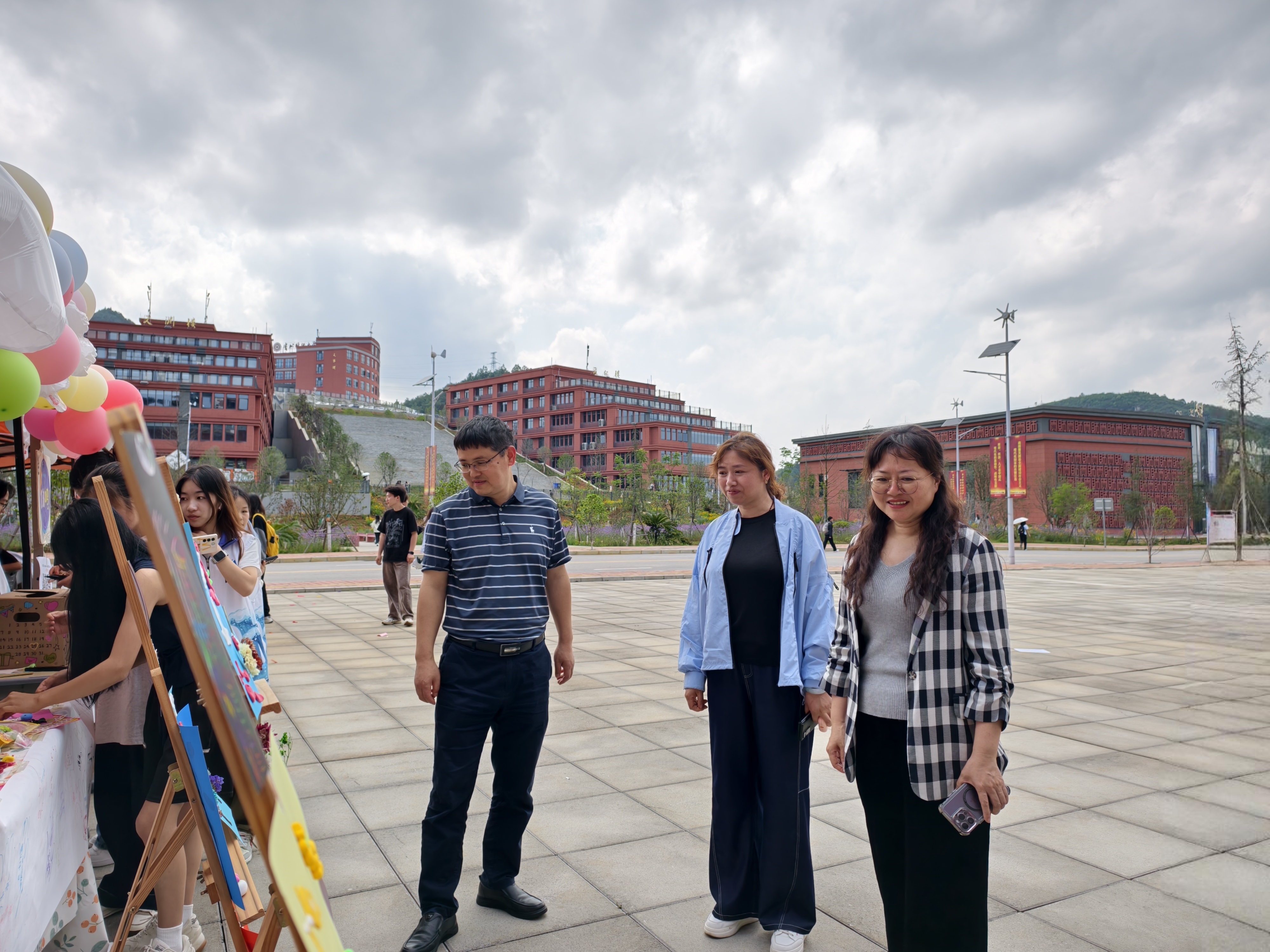 心理协会展区,对学生组织开展的心理活动展开指导。她仔细观看每一项活动展示,不时驻足与同学们交流,详细了解活动设计思路与开展情况;对同学们在心理活动方面进行的创新与实践给予充分肯定,鼓励大家继续探索,通过心理活动为同学们提供心理支持。
