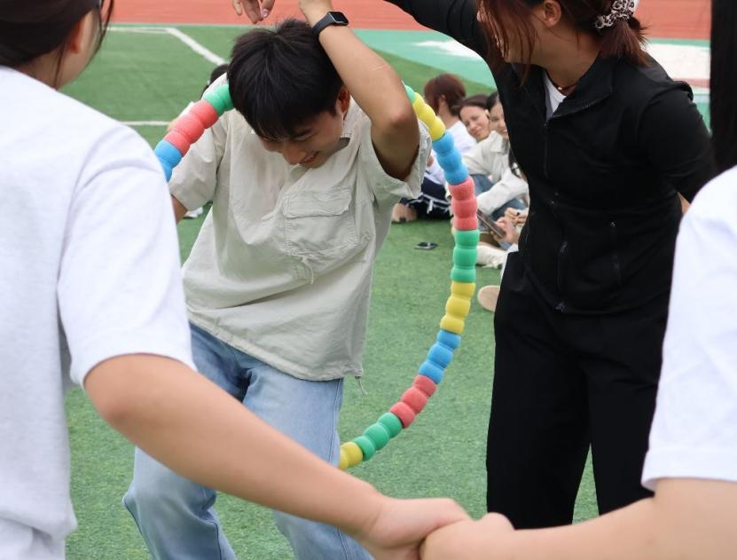 党委副书记黄忠莉老师为活动致辞,她指出“启航杯”不仅是运动竞技的舞台,更是新生融入学院、结识伙伴的纽带,希望大家在奔跑与协作中感受集体温暖,以运动激情点燃青春新征程。紧接着,运动员代表李思和裁判员代表李桐羽庄严宣誓,承诺将严格遵守比赛规则、秉持公平公正原则。随后由黄忠莉老师宣布“启航杯•青春运动季”开幕,正式开启了这场充满活力的体育系列活动。开幕式结束后,趣味运动会率先开展,协力竞走、呼啦圈接力等项目依次进行,学生们专注配合,以和谐友爱诠释了“友谊第一、比赛第二”精神,展现了黄色小说