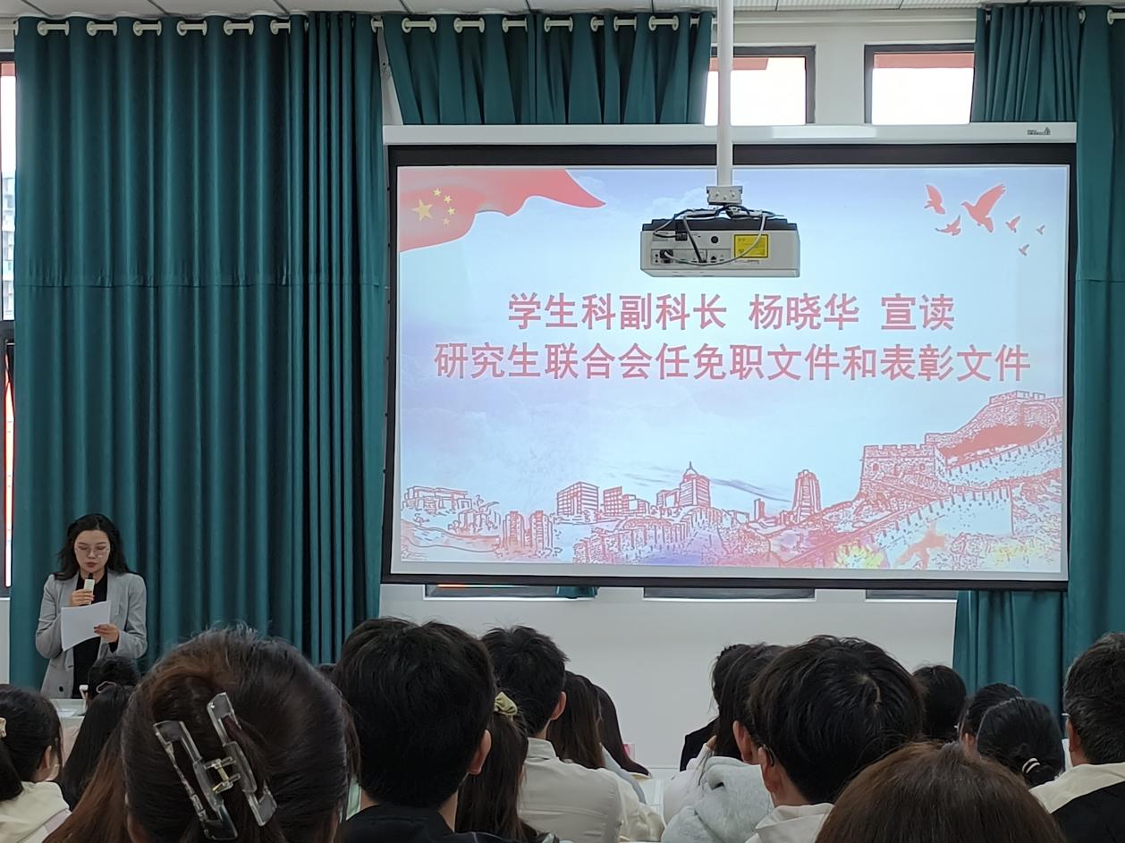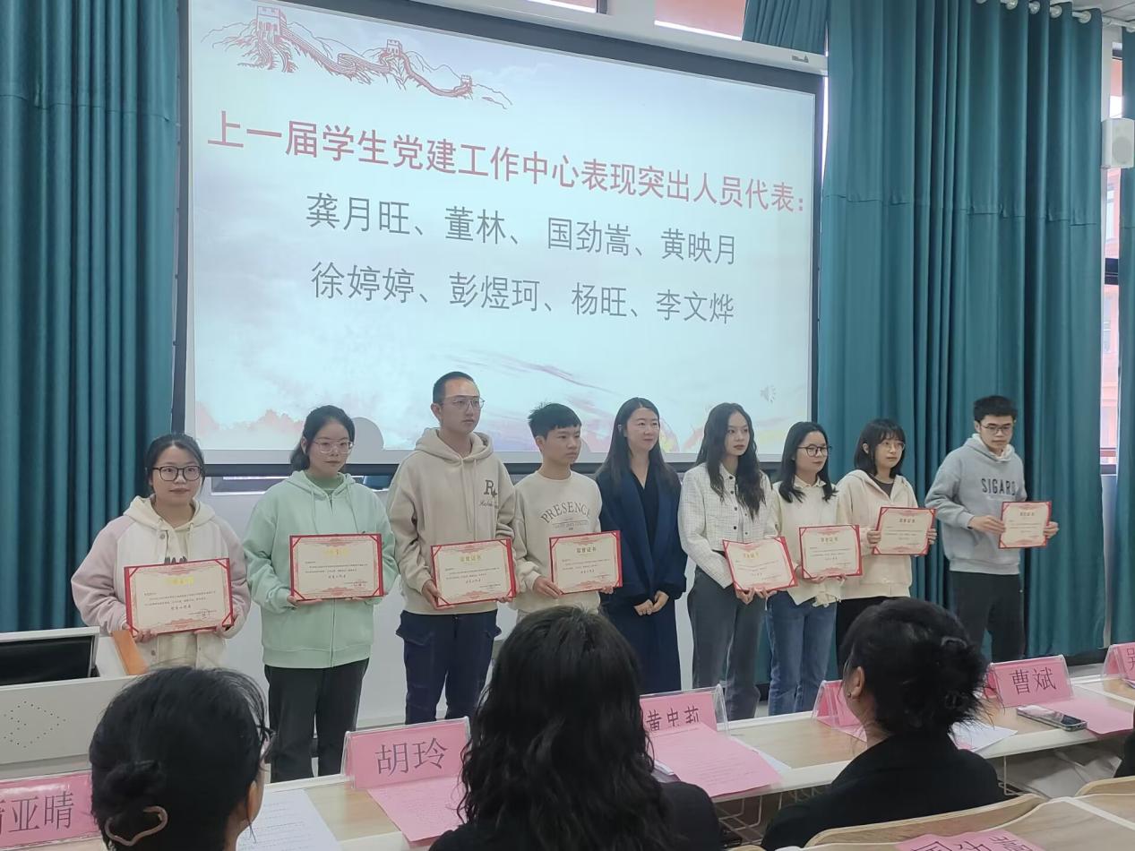 会上,全体成员高唱中华人民共和国国歌。专职组织员蒲亚晴、学生科副科长杨晓华、团委书记吴慧玲分别宣读了学院学生党建工作中心、研究生联合会和团委学生会的任免职文件和表彰文件。然后大会依次表彰了上一届三个学生组织表现突出人员,并为三个学生组织的现任主要负责人颁发聘书。