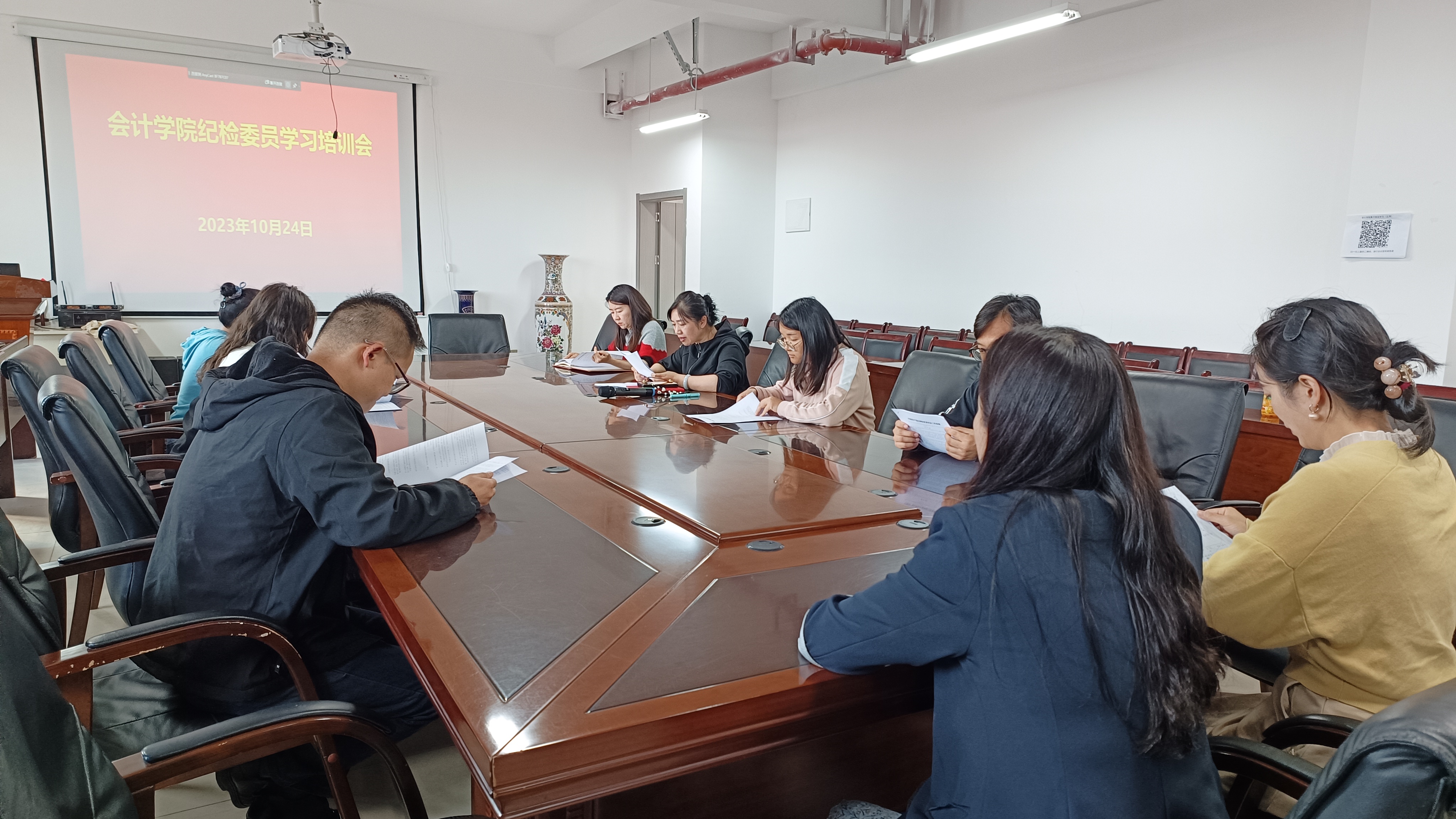 在文渊楼五楼会议室开展党纪检干部培训会,本次会议由纪委书记黄忠莉主持,学院全体纪检干部参加了此次培训会。