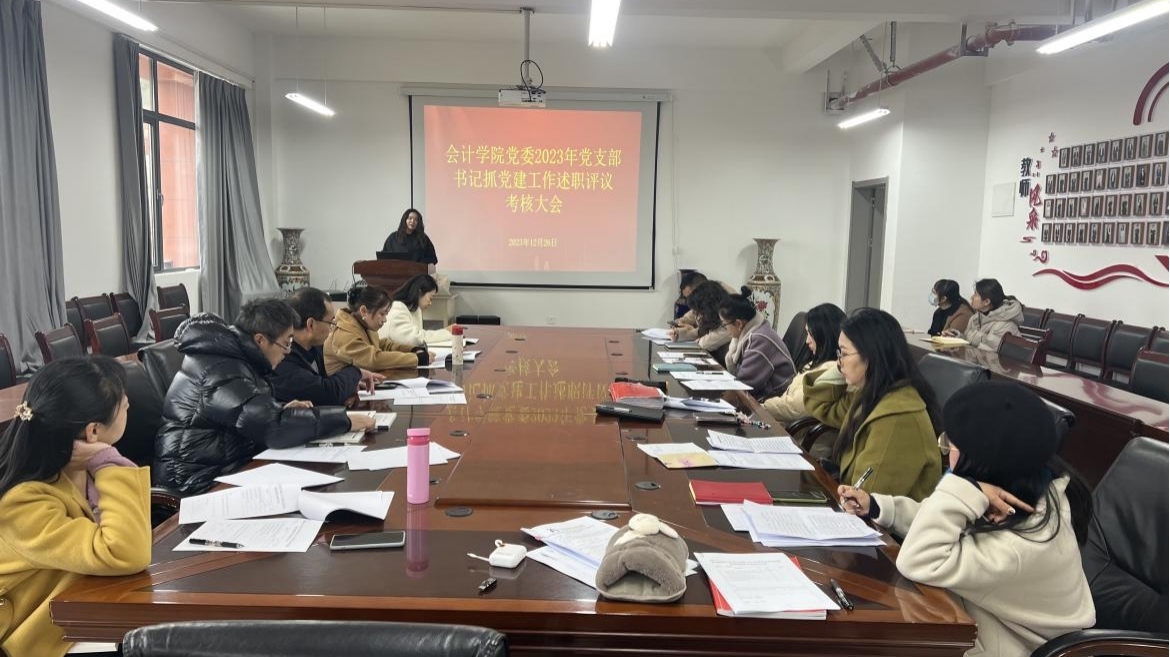 党委于12月26日上午在文渊楼505会议室召开2023年度党支部书记抓党建工作述职评议考核大会。学院领导班子成员、党委委员、各党支部书记以及党员群众代表参加会议。