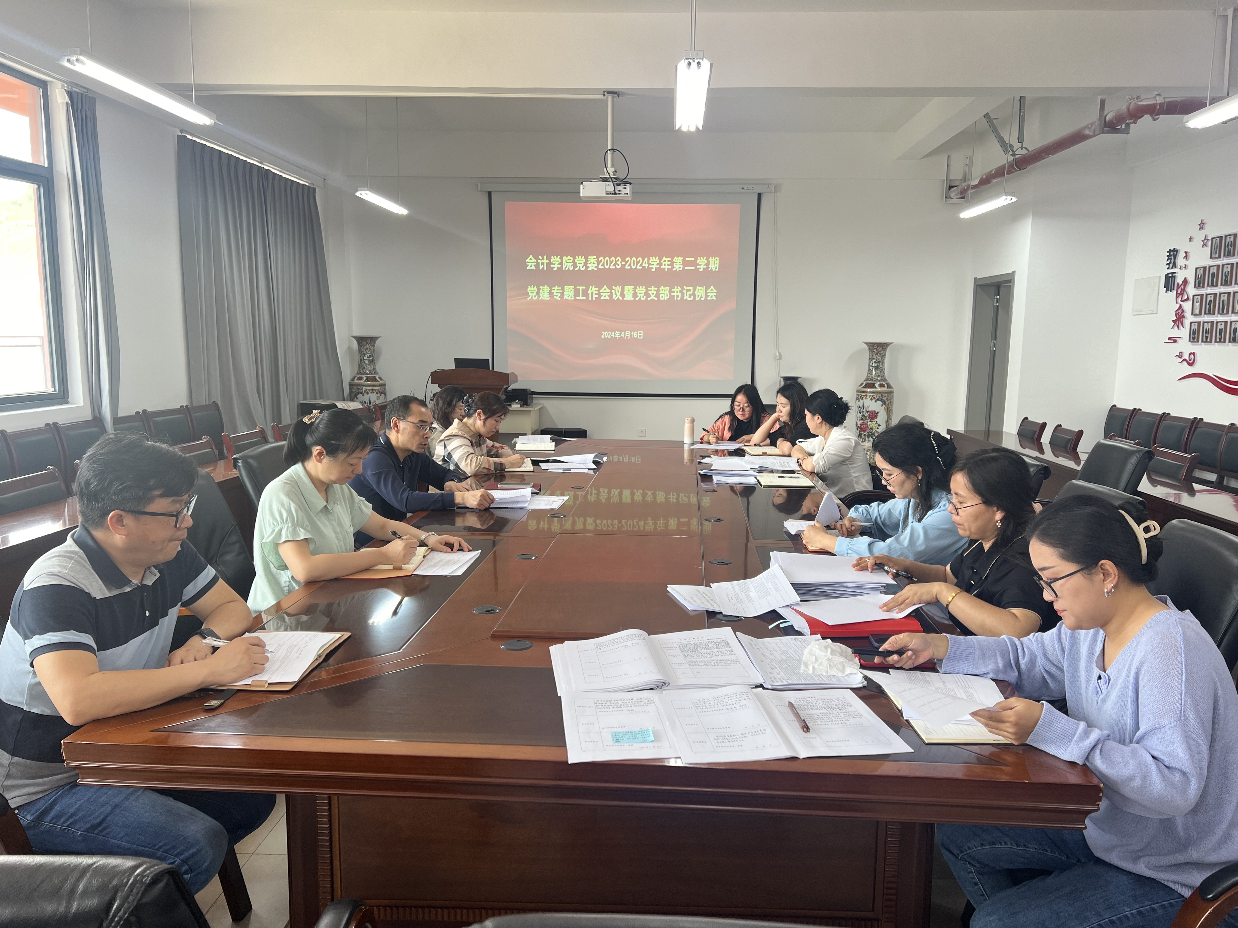 党委在文渊楼505会议室召开2023-2024学年第二学期党建专题工作会议暨党支部书记例会,学院党委领导班子成员、各教工和学生党支部书记参会,会议党委书记聂永刚主持。