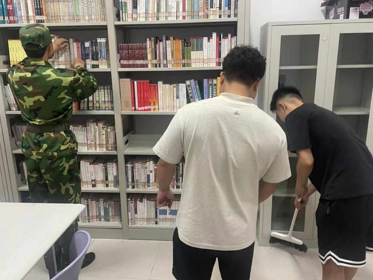 在阅读室,文心苑学生社区第一党支部的党员和同学们不畏脏累,认真清理每一个角落,整理书架,确保书籍摆放整齐有序,他们还对书屋内的桌椅进行了擦拭,并对地面进行了清扫,为同学们提供了一个干净、整洁的阅读空间。通过这样的活动,不仅美化了学习环境,激发了学生们的阅读热情,营造了浓厚的书香氛围,也落实了支部党员的工作责任,充分发挥了党支部的战斗堡垒作用和党员先锋模范作用,培养了支部党员服务同学、助人为乐、无私奉献的精神。