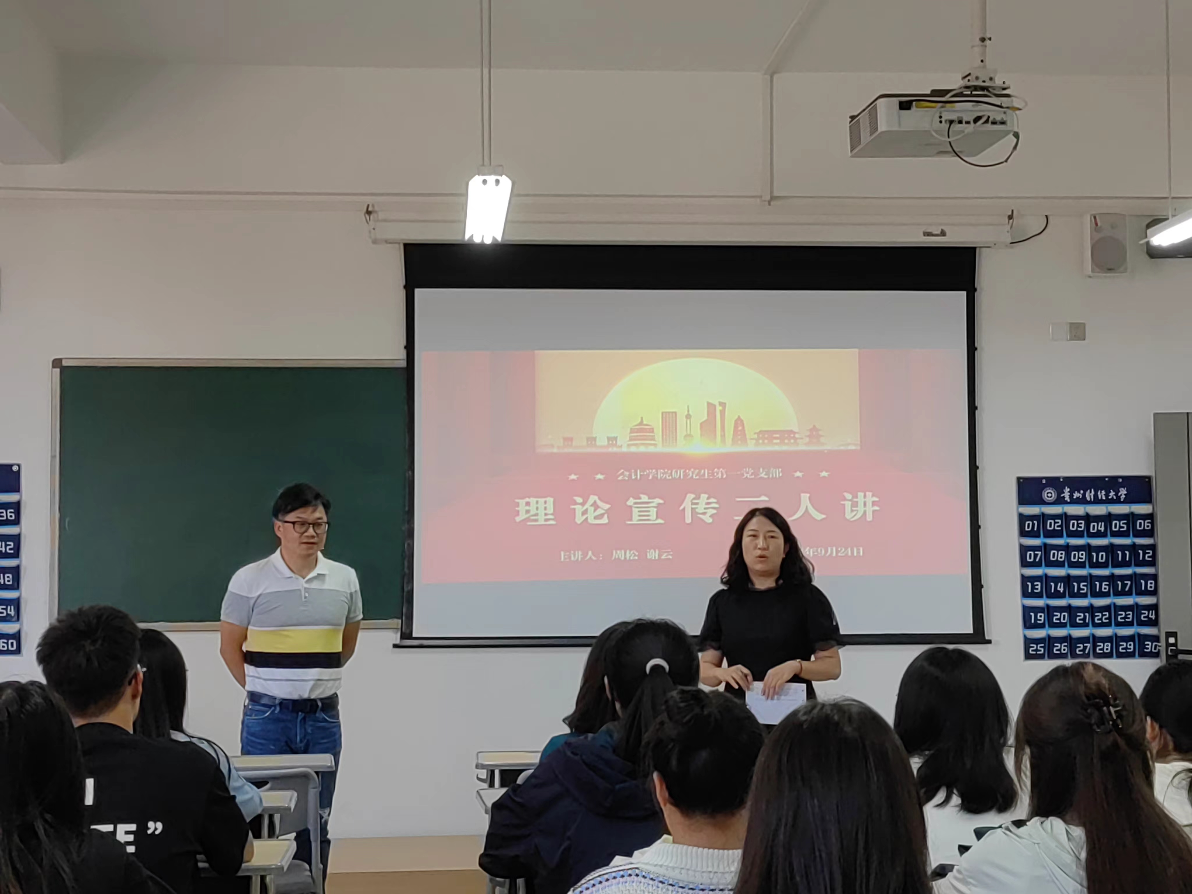 9月25日,黄色小说 副院长周松、研究生辅导员谢云在文渊楼3-4教室为学生党员开展了“学习贯彻党的二十届三中全会精神”理论宣传二人讲活动。