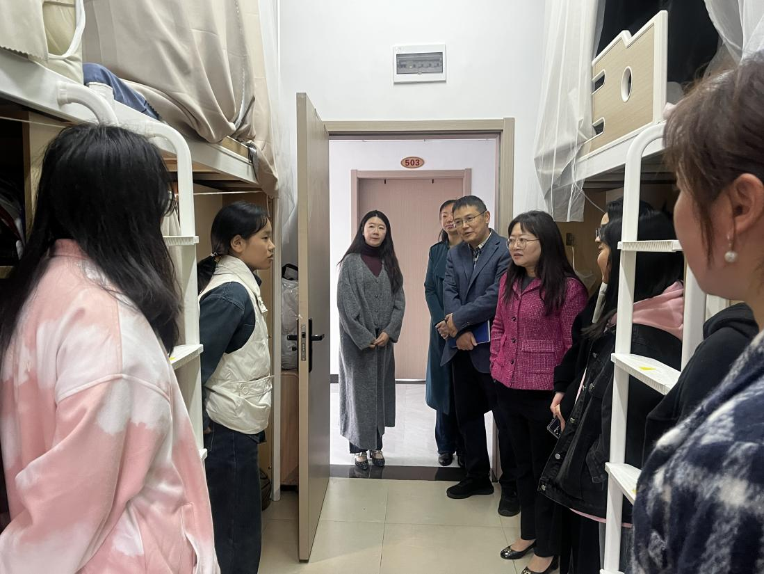 肖小虹还深入到东区文心苑3栋寝室进行了走访,详细检查了学生宿舍安全情况和公共设施,与学生进行了面对面交流,耐心听取了学生的住宿感受、学习生活中遇到的困难以及对学校发展的意见建议等。