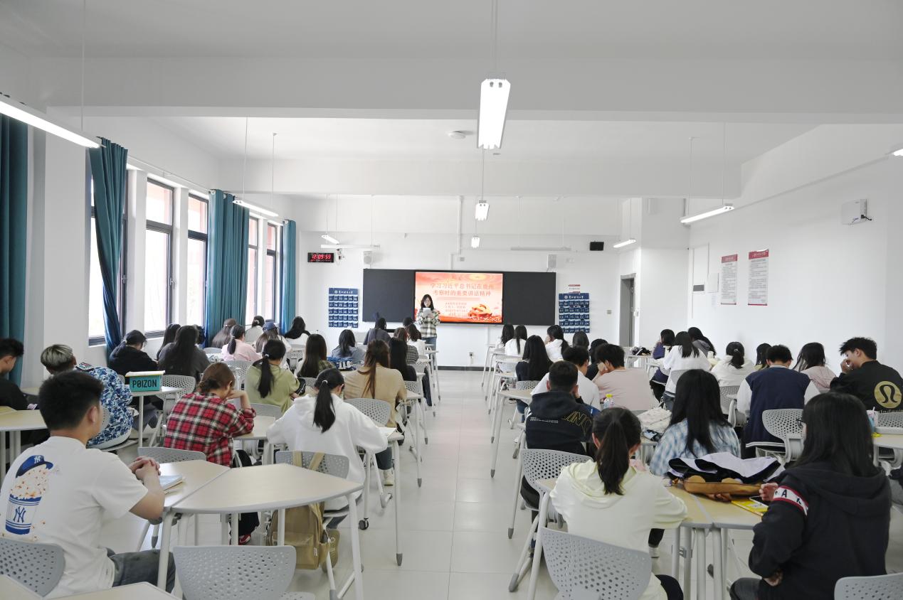 4月29日,学院进一步创新宣讲形式,联合马克思主义学院开展针对性宣讲。一方面,邀请马克思主义学院思政课教师罗婷在文思阶教1-1教室为150余名师生带来了一场精彩纷呈的宣讲会,引导师生深刻领会讲话精神的时代价值和实践要求。另一方面,组织马克思主义学院思政课教师何晓艺与学院党委副书记黄忠莉组成“理论宣传二人讲”组合,深入学院“一站式学生社区”,为20余名学生党员开展了一场别开生面的宣讲活动。这种新颖的宣讲形式受到了学生党员的广泛好评,现场互动热烈、反响良好。