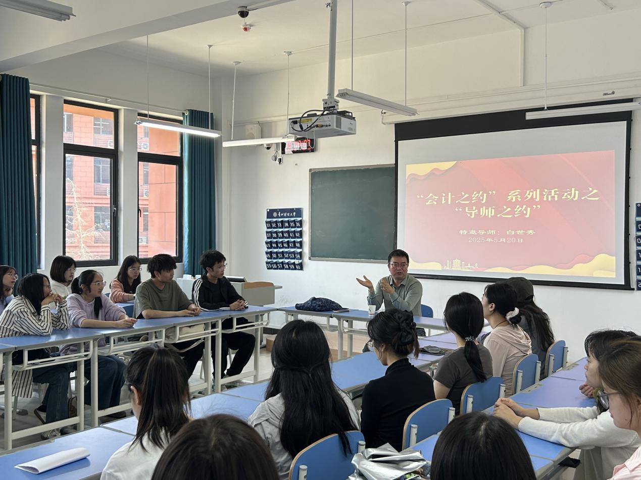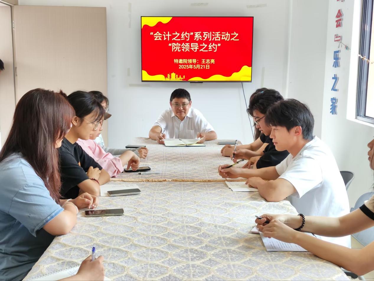 于2025年5月启动了“会计之约”系列活动。活动以“深化交流、共促成长”为主旨,通过“院领导之约”“导师之约”“党支部之约”三大活动板块,构建师生对话、专业指导、思想引领的常态化交流机制。