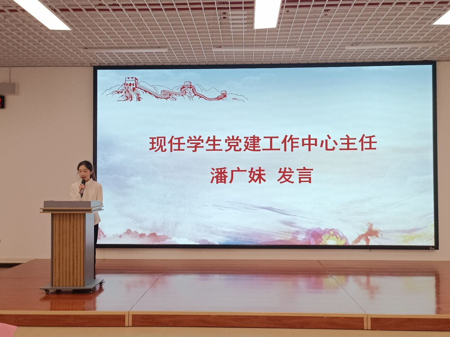现任学生党建工作中心主任潘广妹、学生会主席孙阁鸿、研究生联合会主席朱玉分别发言,代表新一届学生组织向学院和全体同学作出承诺,表示将以更加饱满的热情迎接未知的挑战,带领新一届学生组织再创辉煌佳绩,书写出更加绚烂的篇章。