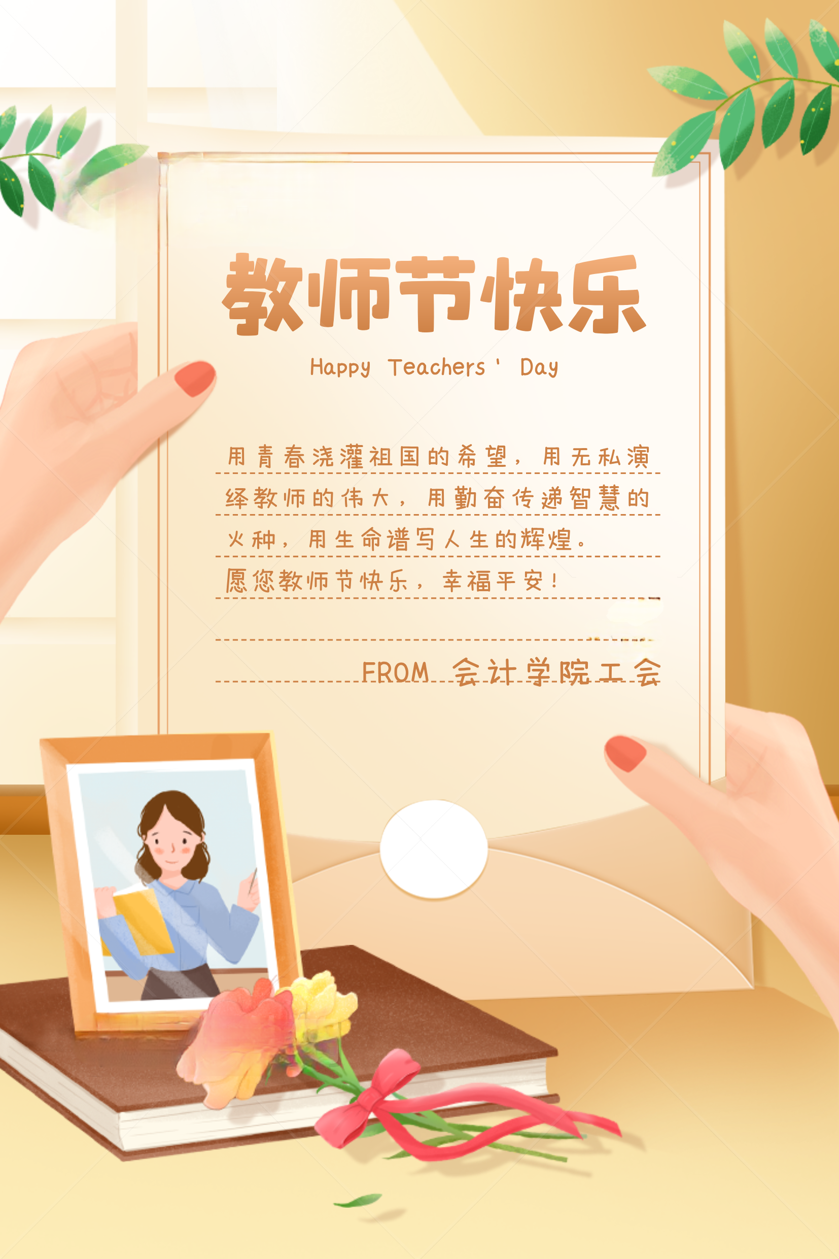 工会积极响应国家勤俭节约及廉政建设的号召,以创新的方式为全院教师送上了一份别具一格的节日祝福。今年教师节期间,工会通过发送电子祝福的形式向辛勤耕耘在教育一线的老师们致以最真挚的节日问候。