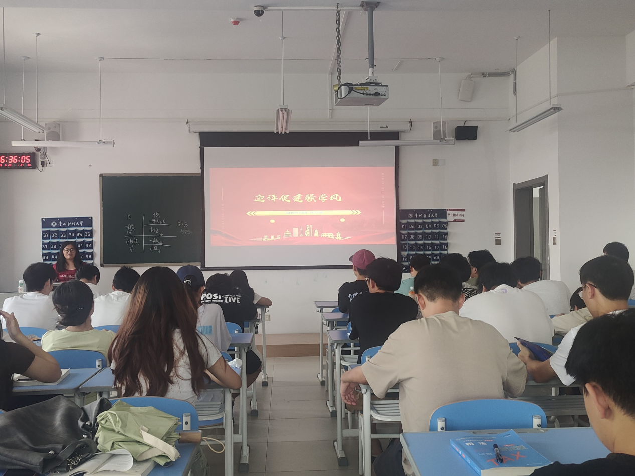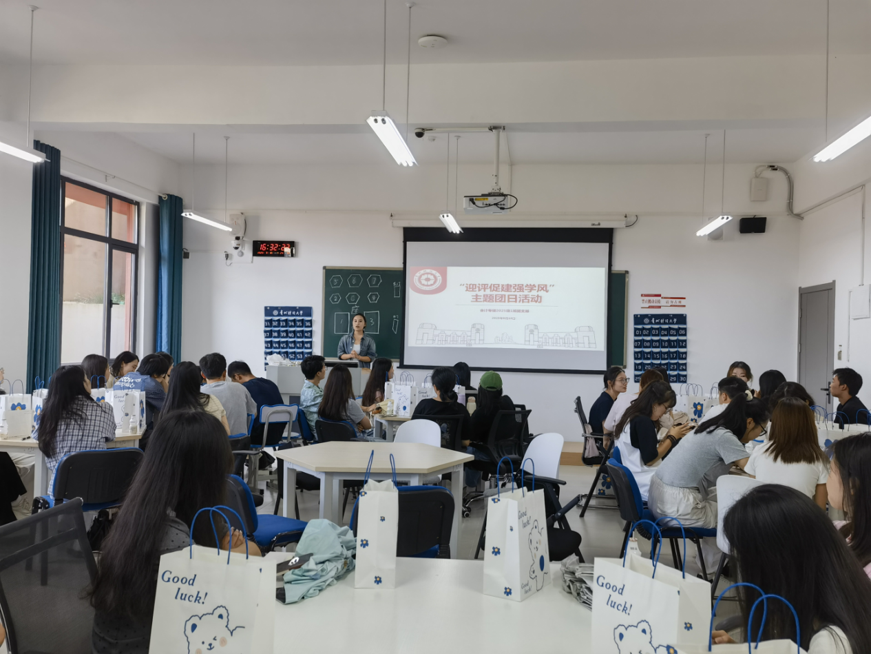 活动期间,各团支部紧扣“迎评促建、学风赋能”核心主题,结合支部特色创新活动形式,实现理论学习与实践践行深度融合。部分团支部以思想引领为切入点,由团支书带领全体学生专题学习党的二十大报告中关于教育、科技、人才工作的重要论述,围绕“新时代大学生的责任担当”展开交流研讨,引导学生深刻理解个人成长与学校发展、教育评估的内在关联;从思想引领延伸至实践指导,各班团支部聚焦学风建设关键环节,通过案例解读、政策宣讲等方式,重点围绕“课堂纪律规范”“实践环节标准”“学术诚信底线”三大核心内容展开系统讲解,助力学生明晰学习行为准则,树立“诚信治学、规范求学”的学习观念。为切实解决学生学习中的实际问题,多个团支部以“问题导向”开展互动研讨,组织学生围绕“如何克服不良学习习惯”畅所欲言。现场既有学生分享“分阶段学习计划”“番茄工作法效率提升”等实用经验,也有同学坦诚交流“拖延症改善路径”“碎片化时间高效利用”等困惑,在思想碰撞中营造“互助共进”的学习氛围。此外,为进一步强化学生责任意识,部分团支部还以仪式感强化责任意识,组织学生参与“学风承诺”签名活动,大家在印着“迎评促建强学风,从我做起践于行”的倡议书上郑重签名,以笔墨传递对优良学风的坚定承诺。活动尾声,各支部同步开展匿名意见征集,广泛收集学生关于学风建设、教学服务、活动开展等方面的建议,为后续工作优化提供方向。