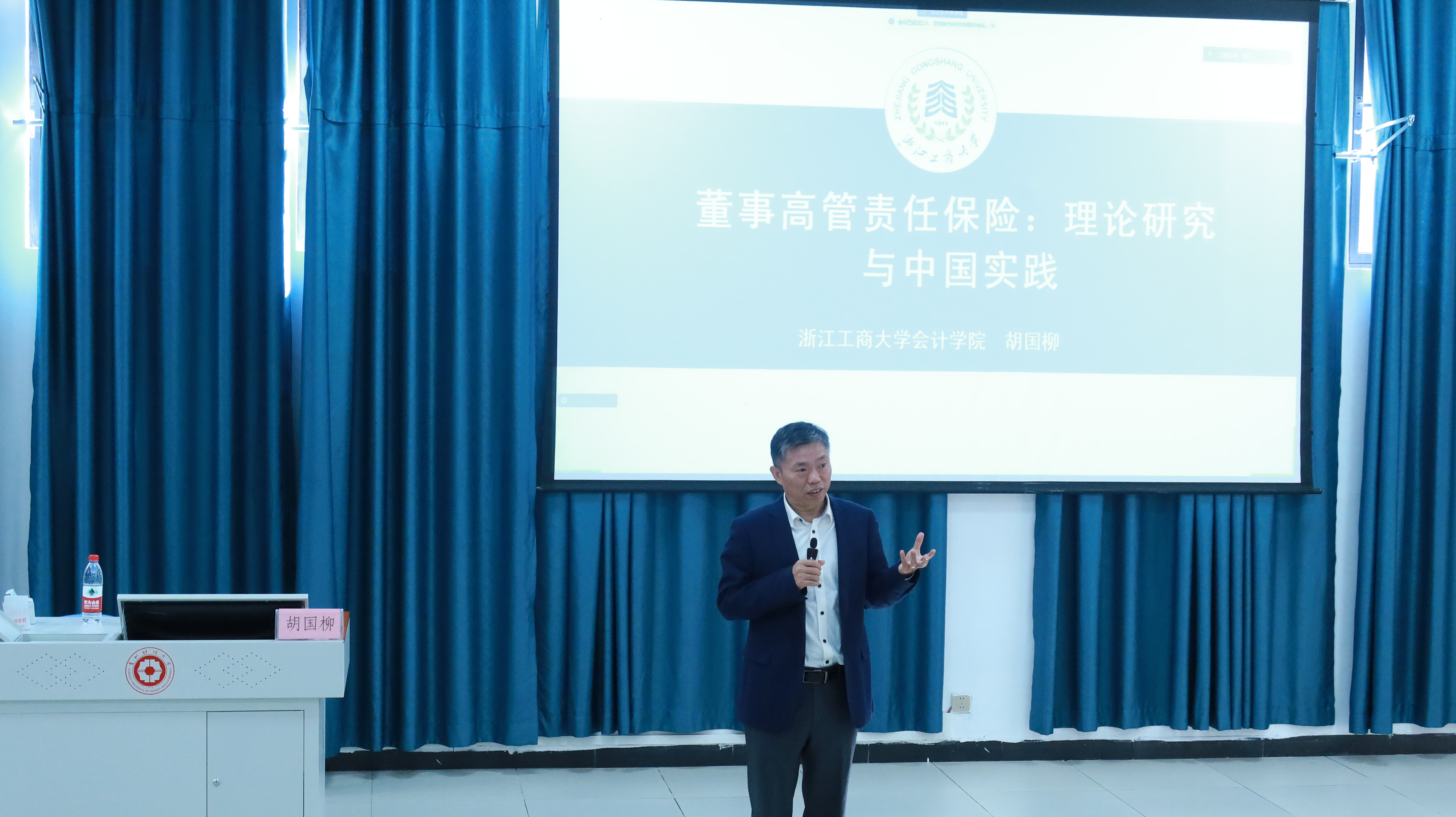 讲座上,胡国柳教授分别对中国的董事高管责任保险(D&O保险)的起源、需求动因、法律法规、认购与研究现状、实践应用以及总结与展望等方面分享了许多有价值的见解和研究成果。