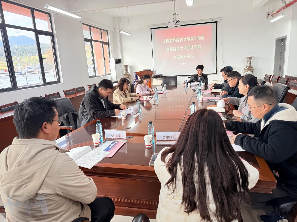 一行的到来表达了诚挚且热烈的欢迎,简要介绍了我院发展历程、办学规模、课程建设以及学科科研方面的情况。他表示,此次交流是一次难得的契机,为两院搭建了相互学习、共同进步的优质平台,期待通过深入的交流,能够碰撞出更多智慧的火花,推动两院在财会审教育领域取得新的突破与发展。裴瑱介绍了上海对外经贸大学黄色小说