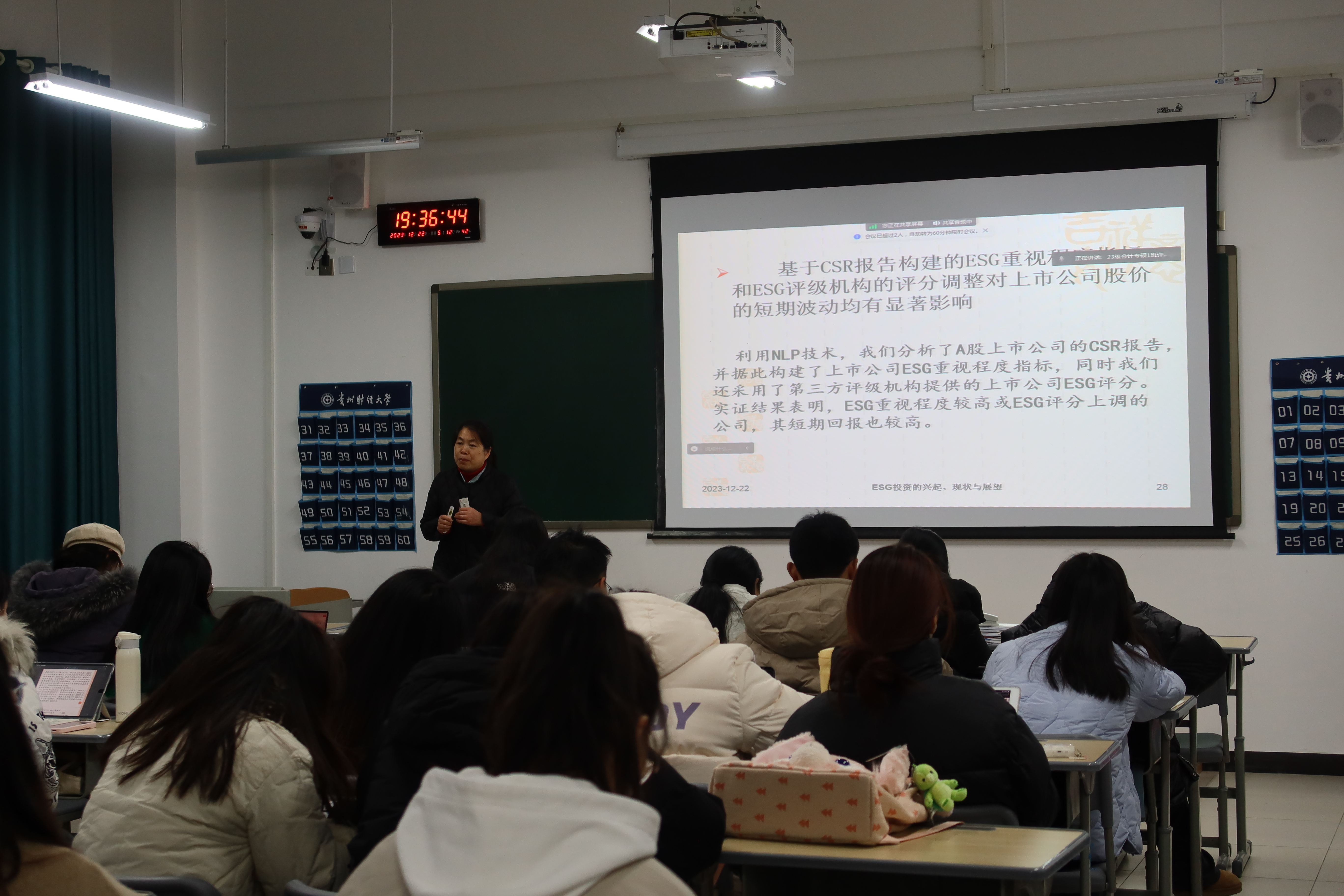12月22日下午,我院李成云老师为研究生同学开展了题为“ESG投资的兴起、现状与展望”的学术讲座,70余名同学参加。