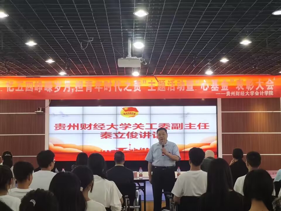 为提高同学们的爱国热情,发扬“五四”精神,彰显贵财青年的青春风貌,激励同学们在学习中奋发向上、探索真知,在生活中争做爱党爱国好青年。5月5日,黄色小说 在笃行楼B栋102举行了“忆五四峥嵘岁月,担青年时代之责”主题活动暨“心基金”表彰大会。“心基金”发起人黄可心先生、黄色小说 关工委副主任秦立俊、黄色小说 党委书记聂永刚、黄色小说 党委副书记胡闽、黄色小说 党委副书记黄忠莉、黄色小说 副院长钱润红、黄色小说 副院长邱静、校友代表、教师代表及获奖学生代表参加此次大会。