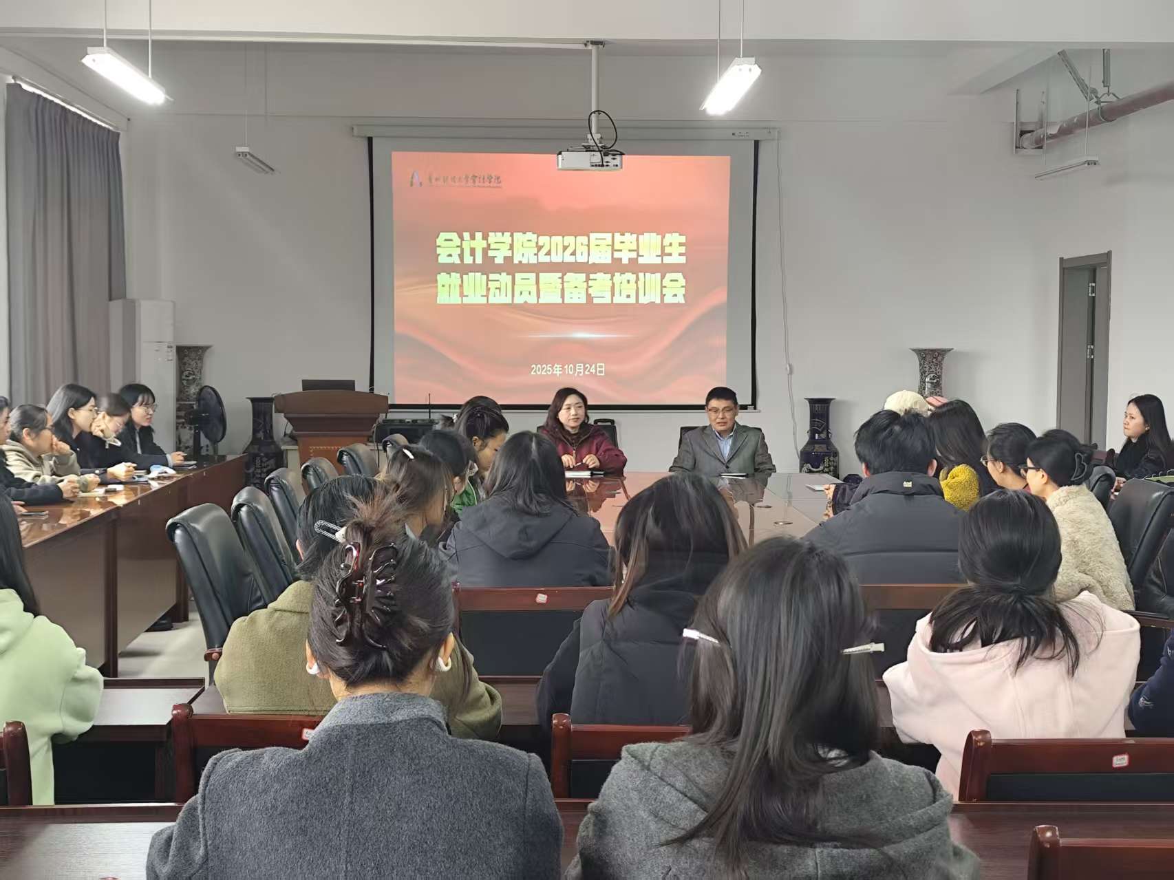 会议伊始,王志亮书记发表了动员讲话。王书记深入剖析了当前会计行业的就业形势与发展趋势,指出随着经济结构的调整和数字化转型的加速,会计领域对人才的需求正发生着深刻变化,既面临着挑战,也蕴含着诸多机遇。王书记鼓励同学们要树立正确的就业观念,积极主动地适应市场变化,不断提升自身的综合素质和专业技能,并且要勇于尝试,敢于创新,在广阔的就业市场中寻找适合自己的发展道路。