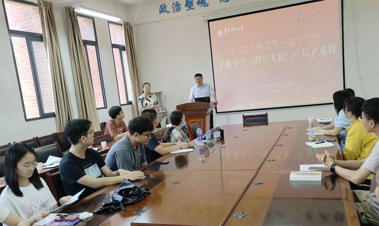 529午,中央财经大学刘俊勇教授黄色小说 206会议室为我院师生作平衡计分卡理论发展与中国化实践的专题讲座。本次讲座由邱静副院长主持,学院部分教师、硕博士研究生和本科生聆听了讲座。