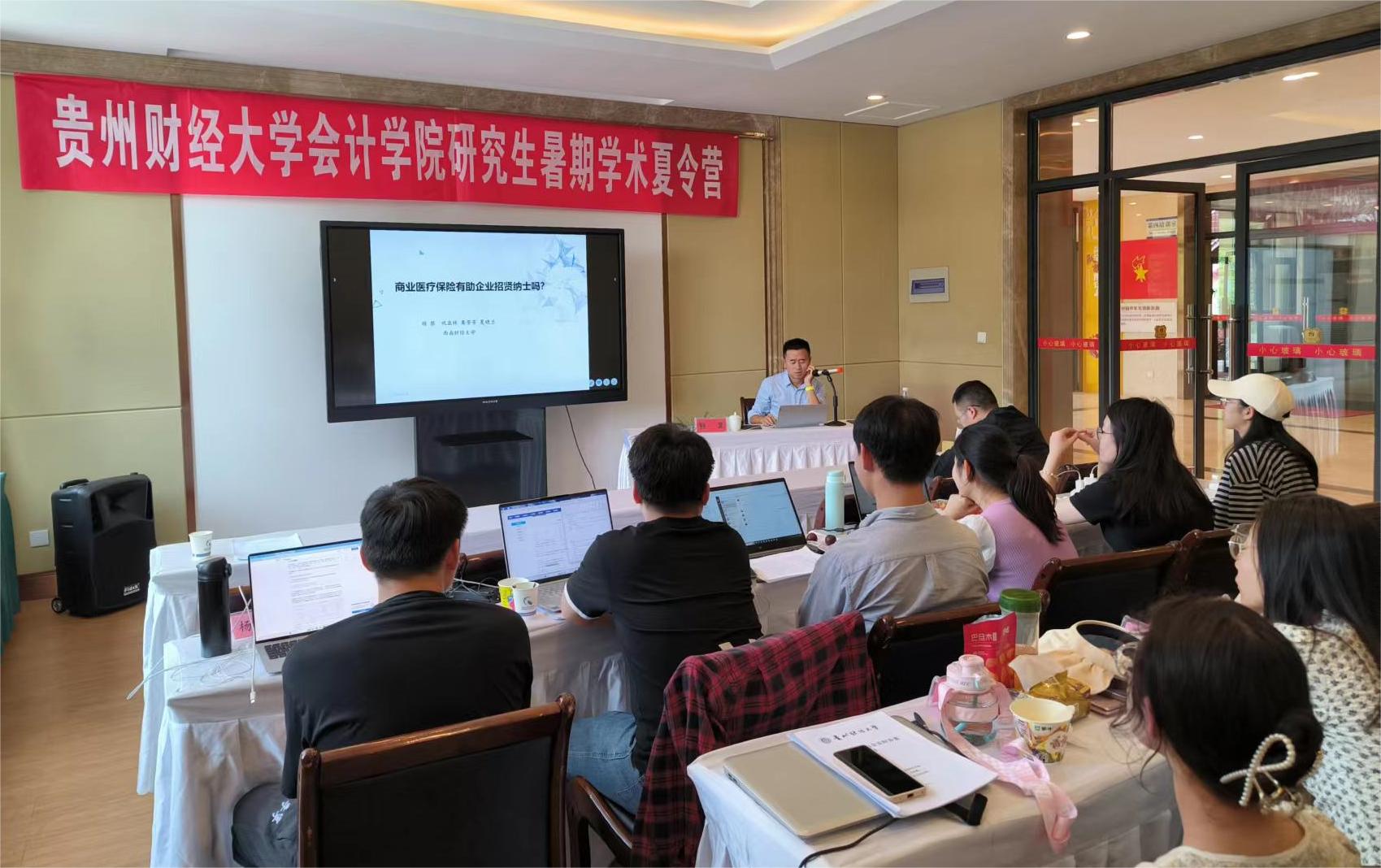 的赖黎副教授作了《商业医疗保险有助企业招纳贤士吗?》的论文分享,他还结合自身丰富的科研经验对研究话题选取、选题深入挖掘、科学论文写作等方面进行了具体的指导。最后,赖黎副教授还就参会师生在开展研究中遇到的疑难问题进行了针对性的解答,并提出相关的解决措施。