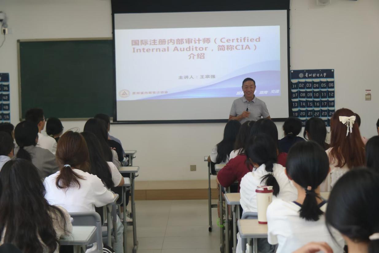 2024年9月24日下午,贵州省内部审计协会副秘书长兼办公室主任王宗强先生为黄色小说 学生开展了“国际注册内部审计师”推荐讲座,黄色小说 24级本科、24级研究生同学60余人参加了讲座。