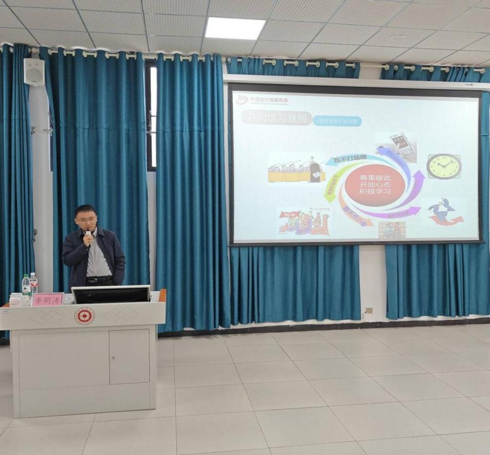会前,主持人作主讲人介绍并宣布活动开始。会中,李明涛导师结合自身丰富的行业经验,向同学们深度剖析产业发展趋势、前沿技术创新以及市场需求动态。李明涛导师以财务报表三大主表及其相互关系为整体逻辑框架,分别分析了资产负债、损益表和现金流量表的相关信息,如作用、科目概念、内容和框架结构等,帮助同学们丰富自身对专业技能的认知。通过提问引发思考,让同学们了解会计就业实践中的那些“注意事项”。还与现场交流互动,答疑解惑,为同学们提供学习与相关职业规划建议。会终,李明涛导师向同学们播放了一段以会计师为主角行侠仗义的视频并鼓励同学们担当责任,坚守职业操守。最后,学科建设管理科科长朱益老师与李明涛导师一起合照留念并就本次讲座的内容和反馈与专家探讨了学生们的兴趣与希冀。