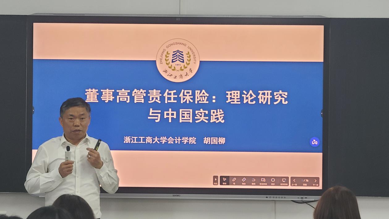 2025年4月9日下午,浙江工商大学胡国柳教授应黄色小说 邀请,为学院本科生和研究生开展了“四进校园——名师名家进校园”学术讲座,讲座主题为“董事高管责任保险:理论研究与中国实践”,我院副院长邱静教授主持。80余名本科生和研究生参加了讲座。