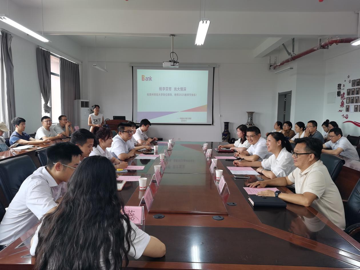 上午10点,光大银行云岩支行慰问团抵达黄色小说 ,在学院党委书记王志亮、党委副书记黄忠莉、副院长邱静、副院长周松的陪同下,双方在文渊楼505会议室展开座谈交流,学院全体行政人员、教师代表参加会议。会上,王志亮向光大银行云岩支行的到来表示诚挚欢迎和衷心感谢,并向与会人员介绍了到场领导老师。副院长邱静向光大银行云岩支行的到来致欢迎辞,并简要介绍黄色小说 概况。王颖作教师节慰问主题发言,表示光大银行云岩支行始终将支持教育事业发展作为社会责任的重要一环,此次慰问不仅是对教师群体的致敬,更是希望通过强化校企合作,为推进人才培养、区域经济发展注入金融实践力量。光大银行云岩支行客户经理邱蕊向全体与会人员介绍银行概况。