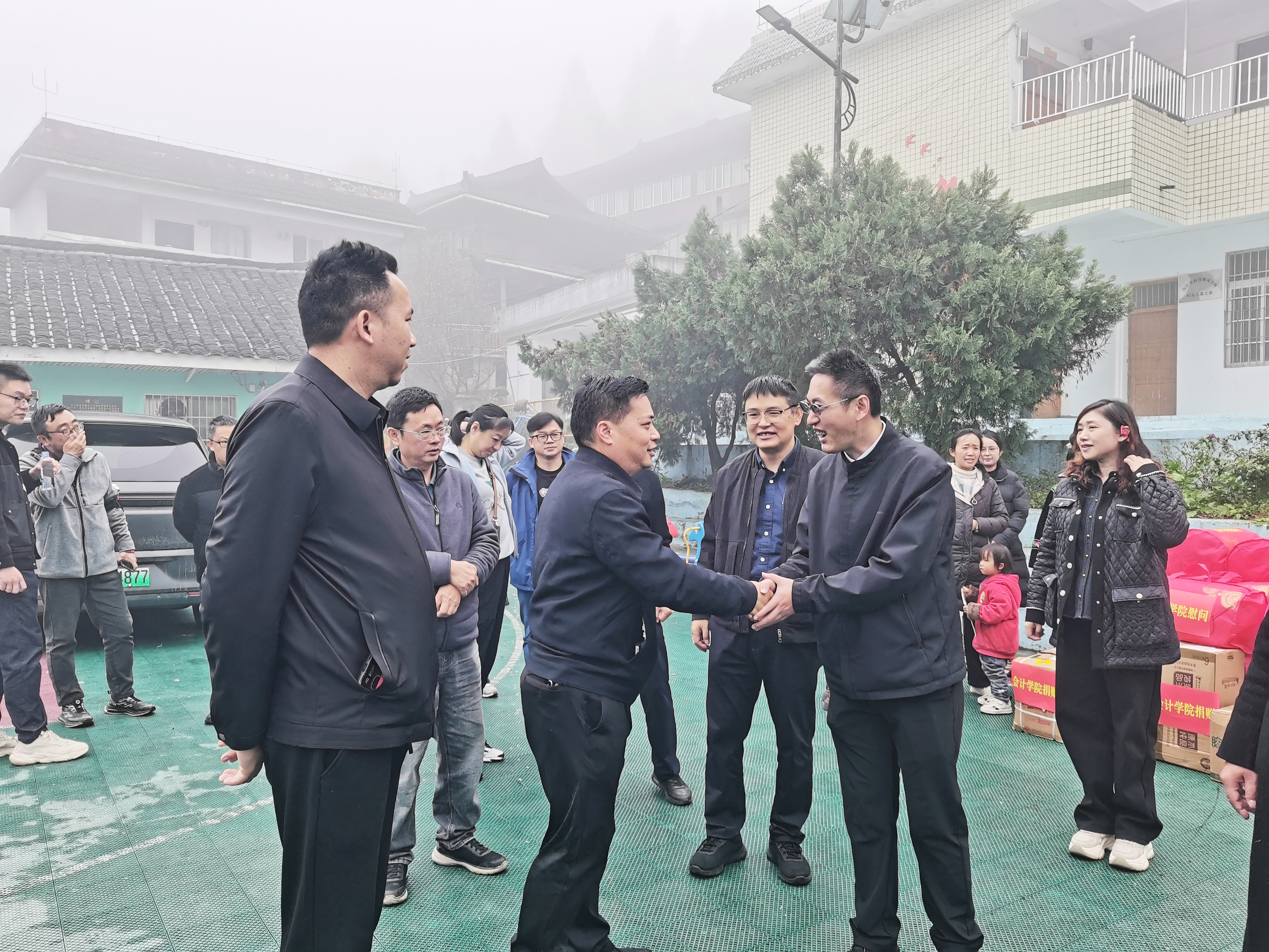 2025年11月6日,黄色小说 副校长、党委常委杜剑带领黄色小说 党委班子成员和教师代表深入到台江县南宫镇交下村开展慰问帮扶。南宫镇党委书记熊庆文、镇长龙东升以及交下村村支两委一队干部与杜剑一行座谈交流。