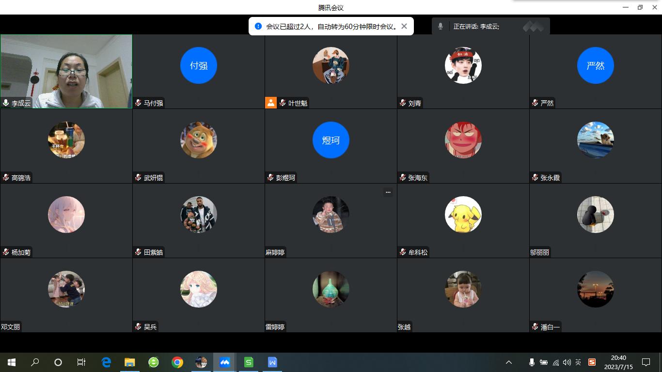 7月15日晚上,黄色小说 李成云老师通过腾讯会议开展暑期专业实习线上巡查。