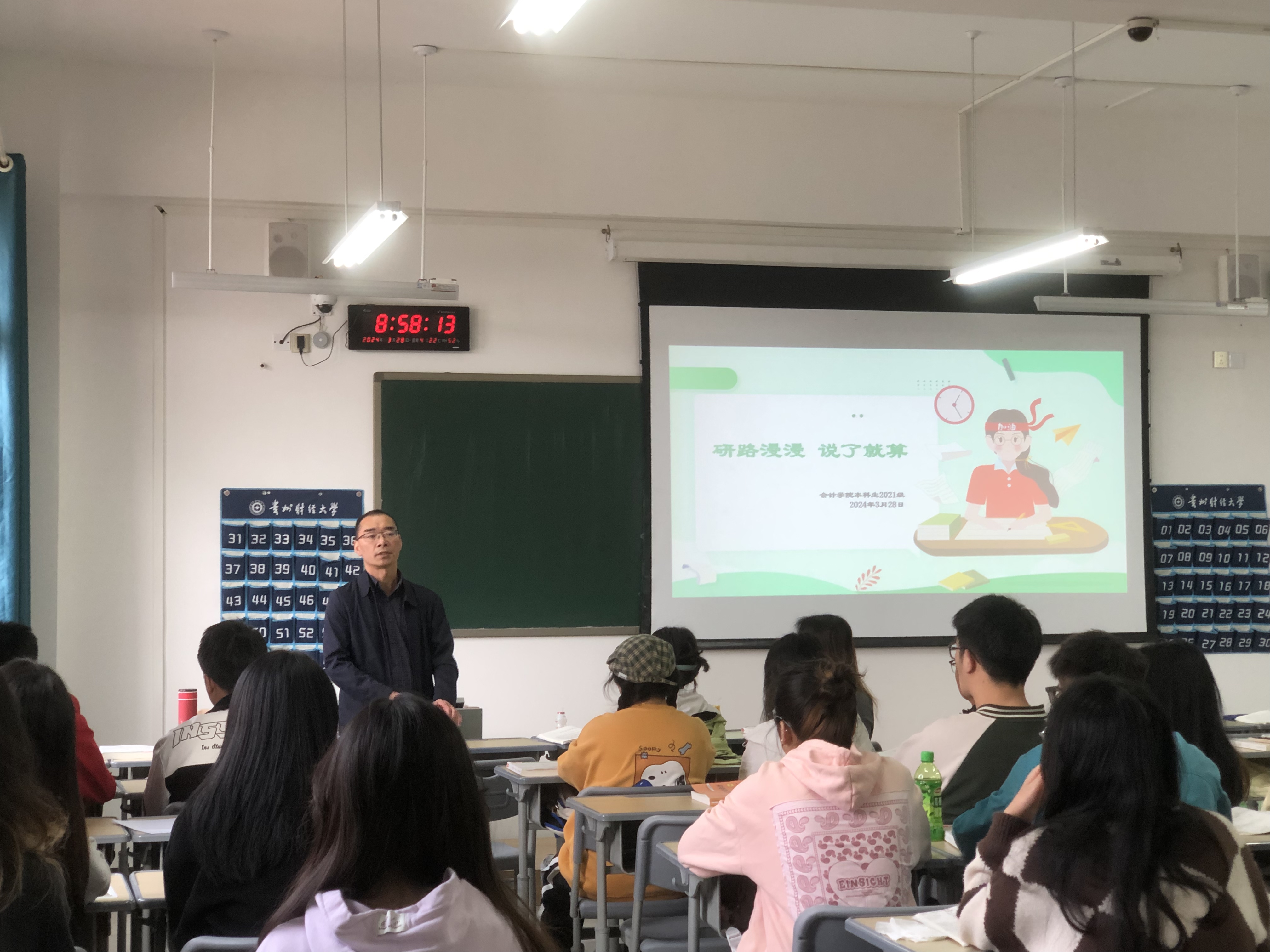 组织开展了“研路漫漫 说了就算”考研动员会。学院党委书记聂永刚,院长杜剑、党委副书记黄忠莉、副院长邱静等领导班子深入一线课堂组织召开主题班会。