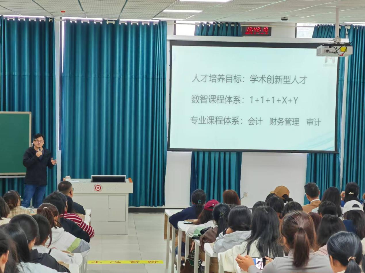 的发展历程,讲解了专业建设情况。他建议大家做好大学四年规划,鼓励大家考研深造,同时希望同学们多参加学科竞赛和社会活动,提高自身综合素质。