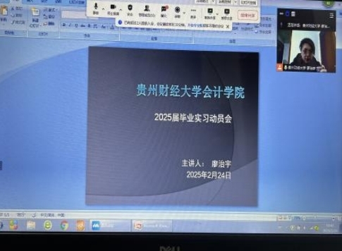 财务管理系通过腾讯会议召开2021级财务管理本科生毕业实习动员大会,会议由财务管理系廖治宇老师主持,指导教师程蕾、李成云、陈岚及2021级财务管理全体本科生同学参加。