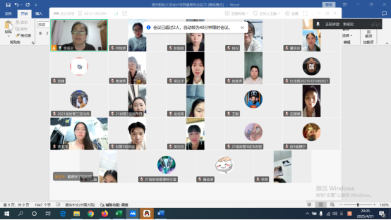 财务管理系李成云老师通过腾讯会议召开了2021级财务管理专业毕业实习总结大会。