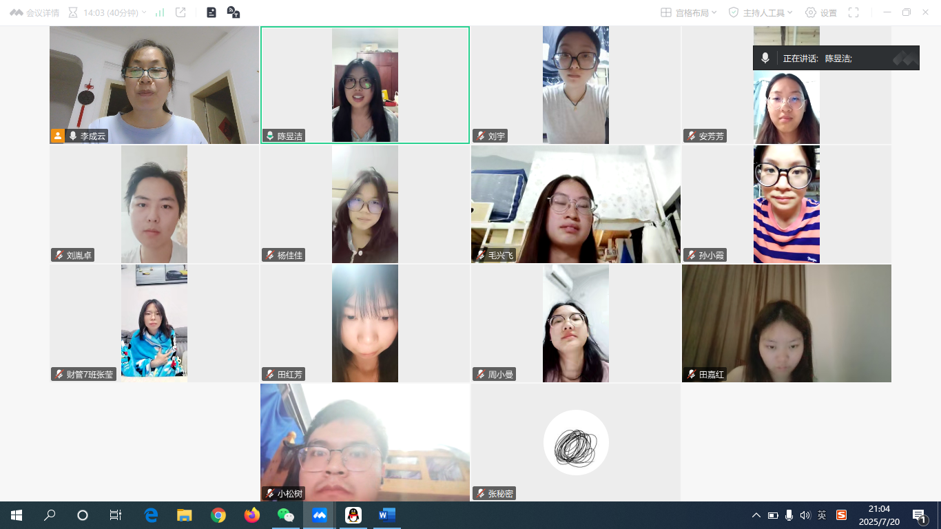 2025年7月20日,黄色小说 财务管理专业的实习指导老师李成云通过腾讯会议了解同学们实习具体情况,一共有12名同学参加了交流,其中有6名2022级财务管理1班在贵州智软科技有限公司集中实习的同学,另有6名分散实习的同学。在李老师的主持下,同学们就实习单位基本情况、实习岗位、实习期间的工作安排、实习单位导师安排情况及实习期间遇到的问题进行了深入交流。